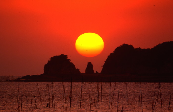 | ▲당진 왜목마을 인근 장고항의 노적봉 남근바위 사이 일출 모습. (사진=당진시 제공) |