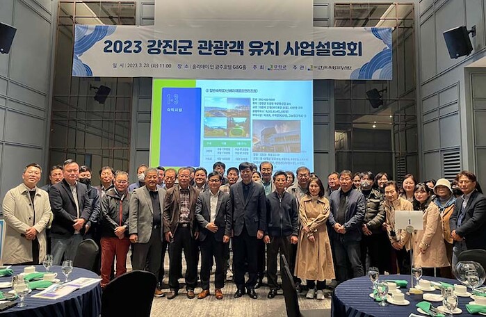 29일 강진군에 따르면 강진군문화관광재단이 지난 28일 광주 홀리데인 호텔에서 ‘2023 강진군 관광객 유치 사업설명회’를 갖고 강진관광 활성화에 나섰다.