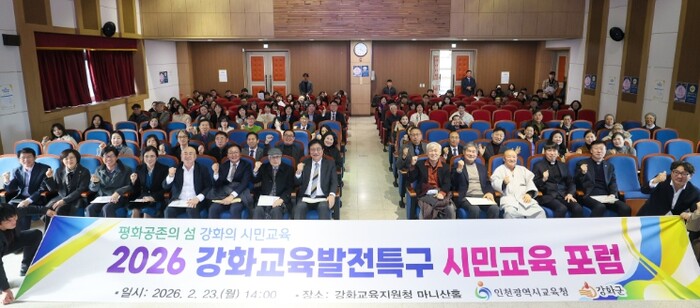 [세계로컬타임즈] 인천광역시교육청은 지난 23일 강화교육지원청 마니산홀에서 ‘2026 강화교육발전특구 시민교육 포럼’을 개최했다.
