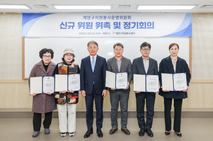 회의에 앞서 신규 위원 위촉식이 진행됐으며, 본 회의에서는 ▲2025년도 계양구자원봉사센터 결산(안) ▲2026년 자원봉사단체 우수사업 지원 심사(안) ▲계양구자원봉사센터 운영규정 일부개정 규정(안) 등 3건의 안건을 심의해 모두 원안 가결했다.