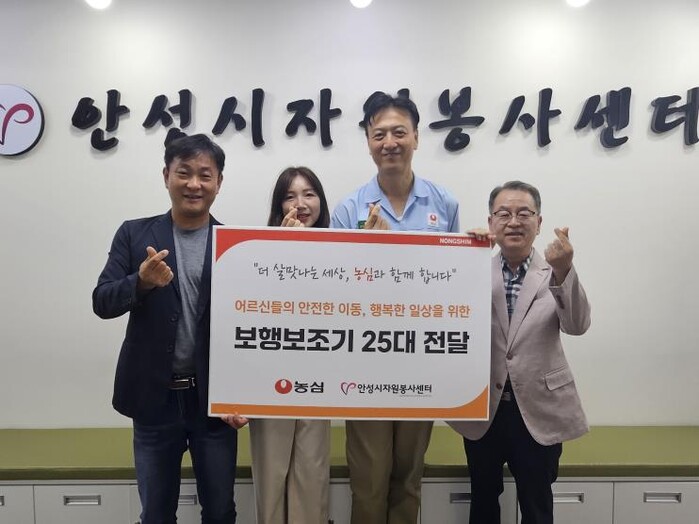 한편, 농심은 ‘더 살맛나는 세상, 농심과 함께 합니다’라는 슬로건 아래 2023년부터 안성시자원봉사센터에 보행 보조를 후원했으며, 임직원 봉사활동 및 복지시설 지원 등 다양한 활동을 통해 지역사회와의 동행을 이어오고 있다.