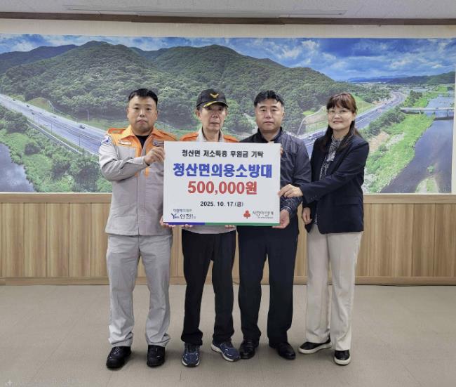 청산면의용소방대장은 “대원들이 마음을 모아 준비한 후원금이 힘겹게 생활하고 계시는 청산면 저소득 가구에 조금이나마 도움이 되기를 바란다”고 말했다.