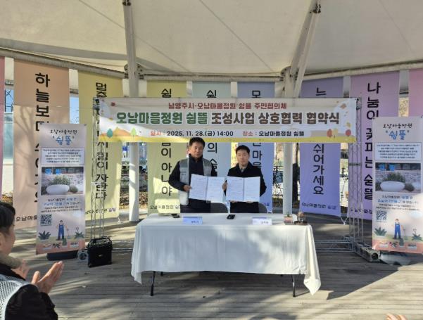 협약식은 조성된 정원의 향후 관리 체계를 강화하기 위해 마련됐으며, 남양주시, 주민협의체, 주민이 참여해 △마을정원 유지관리의 공동 참여 △정원교육 및 역량 강화 지원 △지속 가능한 유지관리 체계 마련 등에 협력하기로 약속했다.