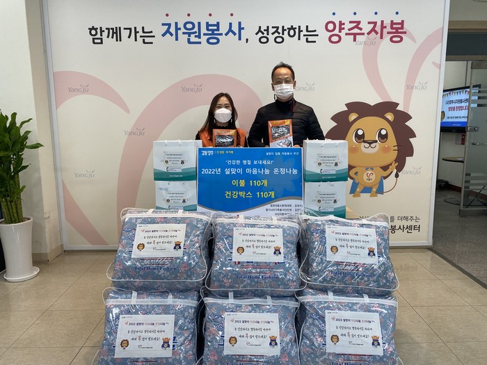 양주시자원봉사센터 관계자는 “설 명절을 앞두고 더욱 소외감을 느낄 어려운 이웃들을 위해 따뜻한 나눔과 봉사로 함께해주신 모든 분께 감사드린다”며 “정성스럽게 마련한 건강박스와 이불로 행복하고 건강한 명절을 보내시길 바란다”고 말했다.