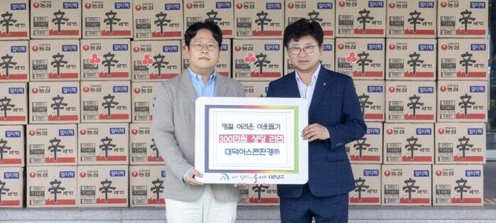 최충규 대덕구청장은 “지역 취약계층을 위해 따뜻한 마음을 전해주신 대덕아스콘환경㈜에 깊이 감사드린다”며 “이번 나눔이 명절에 사회적 고립 위험이 큰 1인 가구에 큰 힘이 될 것”이라고 전했다.