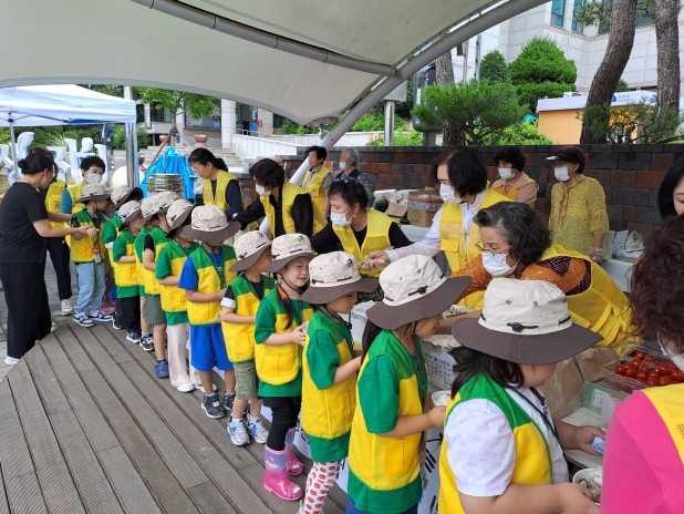 한국자유총연맹 회원 20여 명이 참석한 이날 행사에서는 6.25전쟁 당시 먹었던 찐감자, 쑥개떡, 주먹밥 200인분을 군민들에게 나눠 줬다.