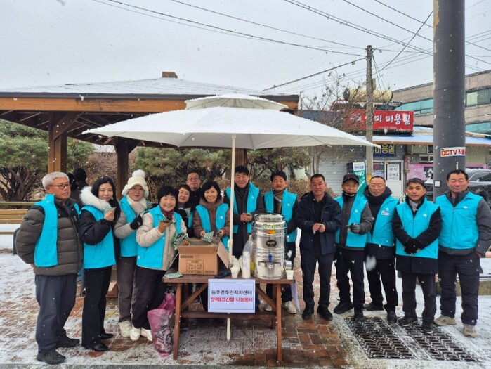 유영호 주민자치위원장을 비롯한 위원들은 이른 아침부터 능주 5일 장에 모여 미리 준비한 핫팩을 주민들에게 직접 전달하고, 따뜻한 차를 대접했다.
