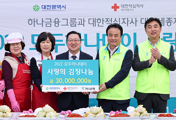 [세계로컬타임즈 민순혜 기자] 이장우 대전시장은 24일 대전시청 남문광장에서 진행한 ‘2022 모두 하나데이 사랑의 김장나눔’ 행사에 참석했다.