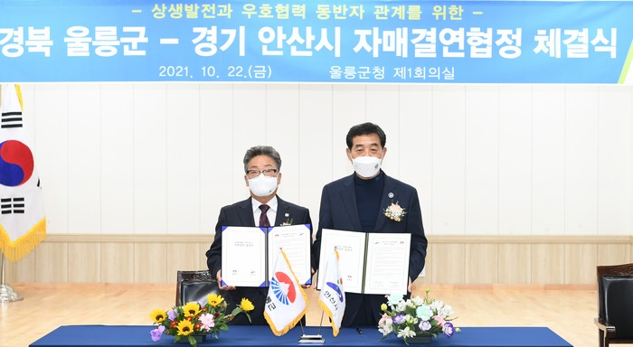 | ▲ 안산시와 울릉군이 자매결연 협정을 맺고 있다.(사진=안산시) |