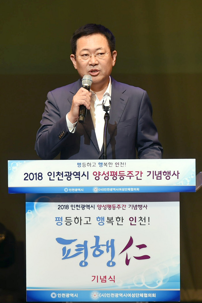 | ▲박남춘 인천시장은 인천문화예술회관에서 최근 열린 양성평등주간 기념식에서 축사를 하고 있다.(사진=인천시청 제공) |