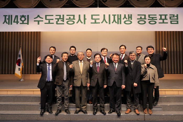 | ▲ ‘제4회 수도권공사 도시재생 공동포럼’을 개최 후 화이팅을 외치고 있다. (사진=인천시 제공) |