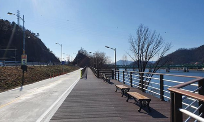18일 대구국토관리사무소에 따르면 이번 공사는 사업비 21억6000만 원을 투입해 총 연장 1.2㎞ 구간에 데크·목교·마사토 포장·쉼터·가로등 설치 등 자전거도로와 구분해 보행로 신설 사업을 지난해 착수한지 12개월 만에 완료했다.