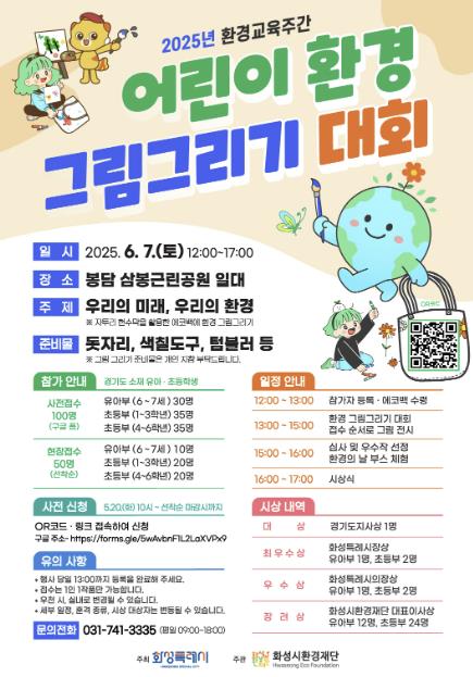 정승호 화성시환경재단 대표이사는 “어린이들이 직접 환경을 생각하고 창의적으로 표현하는 과정을 통해 자연과 공존하는 삶의 가치를 느끼는 계기가 되길 바란다”며 “화성특례시의 탄소중립 비전을 함께 그려보는 뜻깊은 자리가 될 것”이라고 말했다.