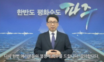 | ▲최종환 파주시장이 영상격려사를 하고 있다. (사진=파주시 제공) |