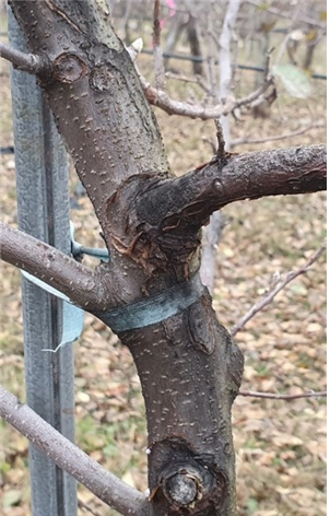 | ▲사과 과수화상병 궤양(사진=경기도 북부청) |