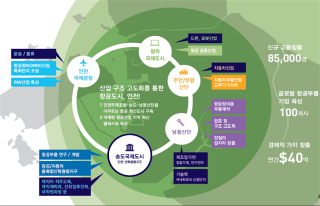 | ▲ 인천 항공산업 산학융합지구 발전단계(사진=인천시 캡쳐) |