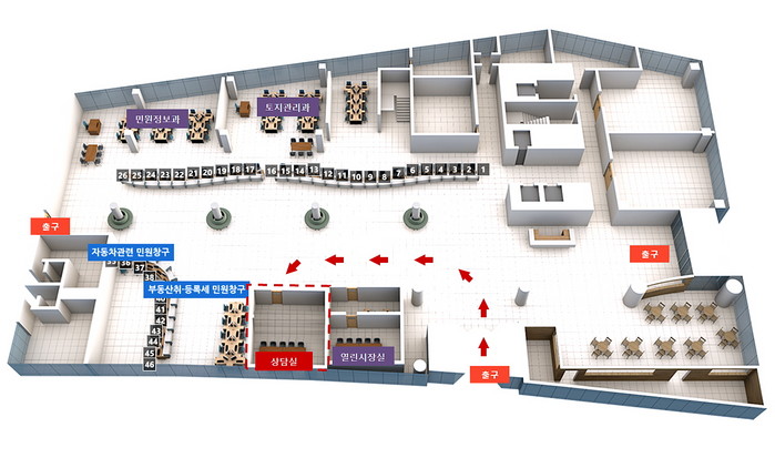 | ▲ 당진시가 월 2회 운영하는 건축상담 민원실은 당진시청 1층 열린 시장실 옆에 위치한다.(그림=당진시 제공) |
