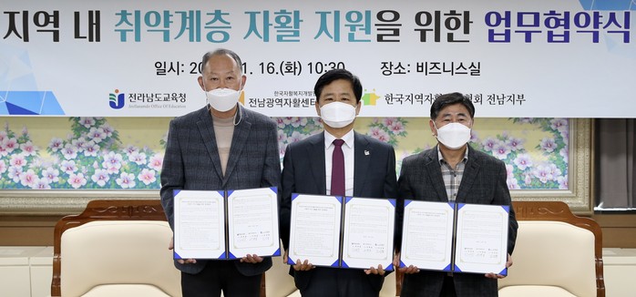 전라남도교육청과 한국지역자활센터협회전남지부 전남광역자활센터은 16일 비즈니스실에서 상호 협력을 위한 업무협약을 체결했다.