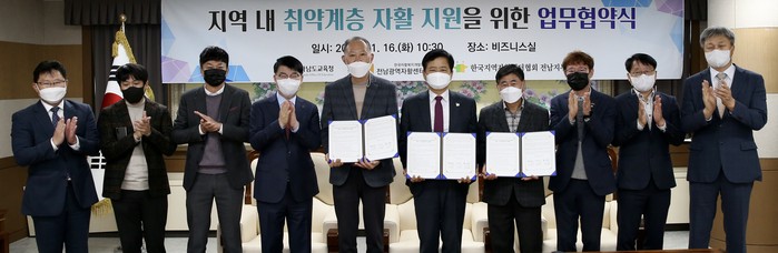 한국지역자활센협회전남지부와 전남광역자활센터는 △ 제공 받은 자원(물품)의 사회적 배분을 통한 재활용 △ 교육지원청 및 학교에 양질의 자활인력 제공 △ 주거환경 취약아동 가정의 청소·방역서비스 지원 및 자원봉사활동 △ 깨끗하고 안전한 학교시설관리 사업참여 등의 협력사업을 벌이기로 했다.