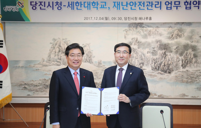 당진시에 따르면 4일 김홍장 시장과 이승훈 총장이 참석한 가운데 안전한 당진시 조성을 위한 업무협약을 체결했다.
