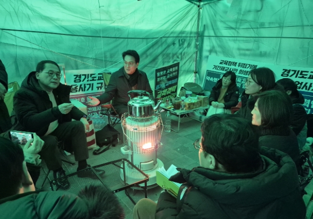 이날 현장에는 안광률 위원장을 비롯해 김영희 경기도의회 교육기획위원회 의원, 안민석 경기미래교육자치포럼 대표가 함께했으며, 농성 대표자인 강은영 기간제 사서교사로부터 경기도교육청의 ‘경력 50% 인정’ 지침으로 인한 현장의 어려움과 우려를 구체적으로 들었다.