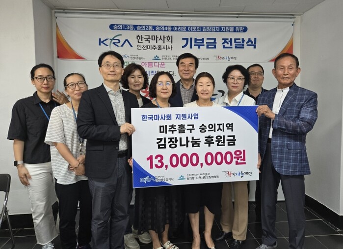 전달식에는 한국마사회 인천미추홀지사 관계자를 비롯해 지역사회보장협의체 위원, 학산나눔재단 관계자 등이 함께 자리해 뜻깊은 시간을 가졌다.