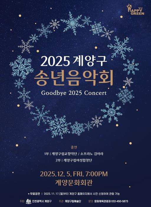 겨울밤을 은은하게 밝혀줄 아름다운 멜로디와 따뜻한 위로가 함께하는 시간으로, 계양 주민이라면 놓치기 아까운 특별한 연말 선물이 될 것이다.