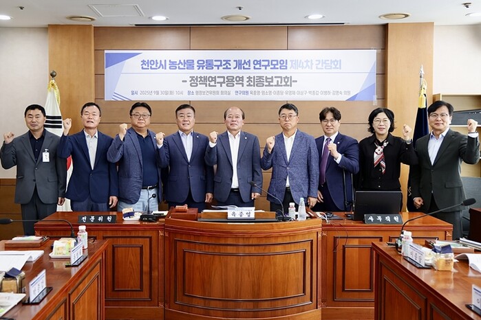 [세계로컬타임즈] 천안시의회 농산물 유통구조 개선 연구모임이 9월 30일 오전 10시 의회 행정보건위원회 회의실에서 7개월간의 연구 성과를 담은 최종보고회를 개최했다.