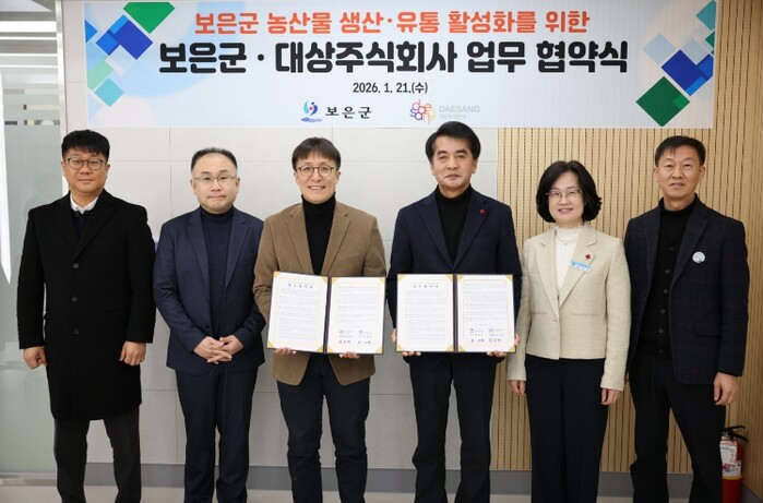 군은 21일 대상 주식회사와 ‘보은군 농산물 생산·유통 활성화를 위한 업무협약(MOU)’을 체결하고, 스마트농업 확산과 농산물 유통 확대를 위한 협력 체계를 구축한다.