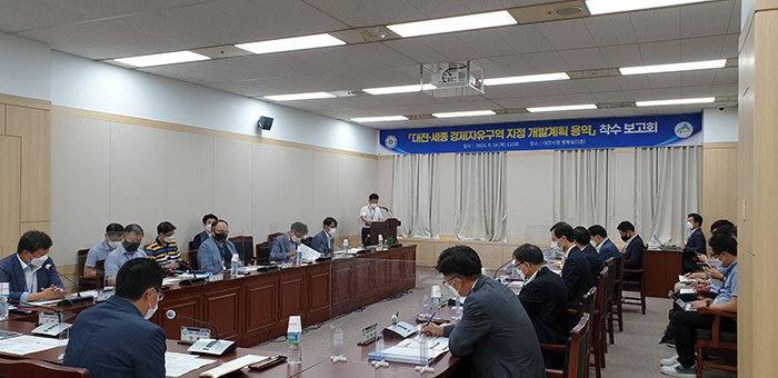16일 대전시에 따르면 대전시와 세종시(이하 ‘양 도시’)는 이날 오전 대전시청 행복실(5층)에서 양 도시 관계자, 대전세종연구원 선임연구원, 전문가, 용역사 등 20여 명이 참석한 가운데 ‘대전·세종 경제자유구역 지정을 위한 개발계획 용역’ 착수보고회를 개최했다.