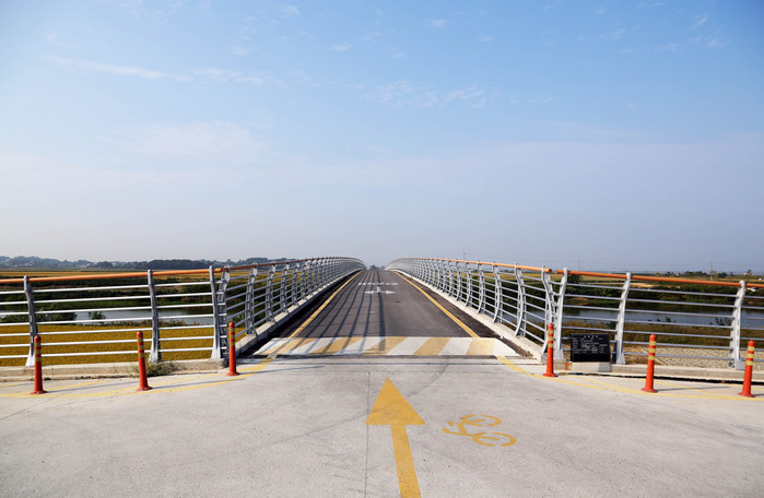| ▲삽교호 제방 자전거길에 이정표 등 편의시설이 설치돼 있다. |