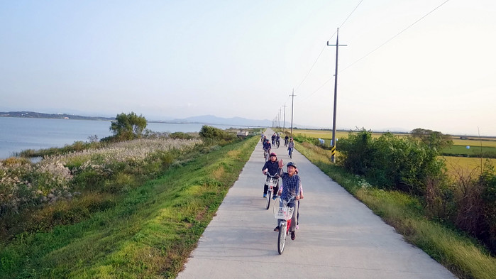 이 자전거 길은 한쪽으로 호수의 풍광이 한눈에 들어오고 반대편으로는 수확의 계절을 맞아 황금빛 옷으로 갈아입기 시작한 들녘이 어우러지며 장관을 연출한다.