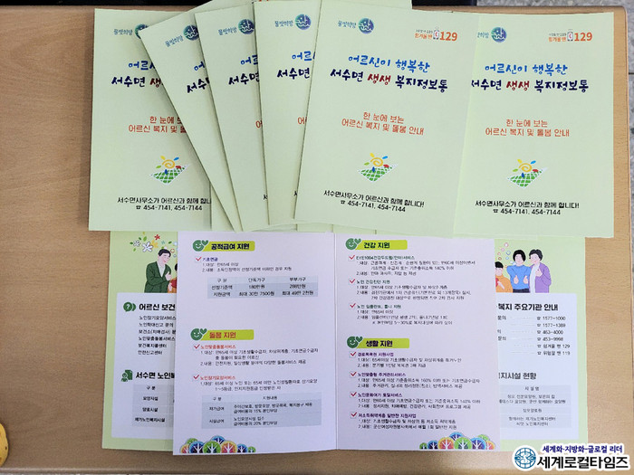 5일 군산시에 따르면 서수면은 복지사각지대 해소 및 찾아가는 복지상담의 일환으로 노인복지 관련 핵심 정보를 모아 어르신 전용 복지 홍보 리플렛을 제작했다.