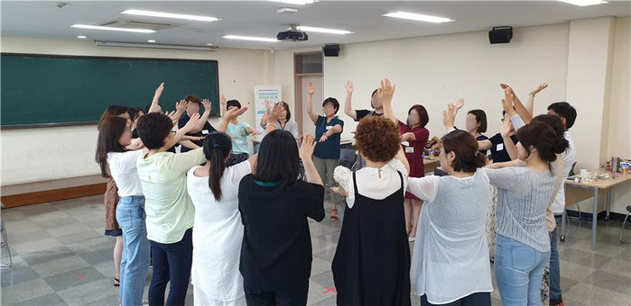 | ▲ 지난해 마을문화교육활동가 양성과정에 참여한 시민들이 인하대에서 역할탐색 수업을 함께 하고 있다. (사진=인하대 제공) |