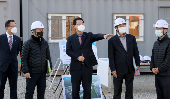 | ▲ 김영록 지사가 전남 동부권 통합청사 건립현장을 방문하고 있다.(사진=전남도) |