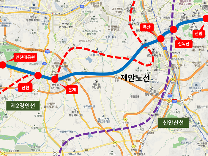한편, 최근 발표된 인천지하철 2호선 연장 사전타당성 조사는 ▲독산역 연장 ▲광명역 연장 ▲매화 연장의 3가지 안이 모두 경제성(B/C) 기준인 1.0에는 미달하지만, 독산역 연장 방안이 상대적으로 높은 0.83 수준으로 조사됐다. 반면, 이미 예비타당성을 통과한 GTX-B, 월곶-판교선을 반영하는 경우에는 0.55수준으로 크게 낮아지는 것으로 나타났다.