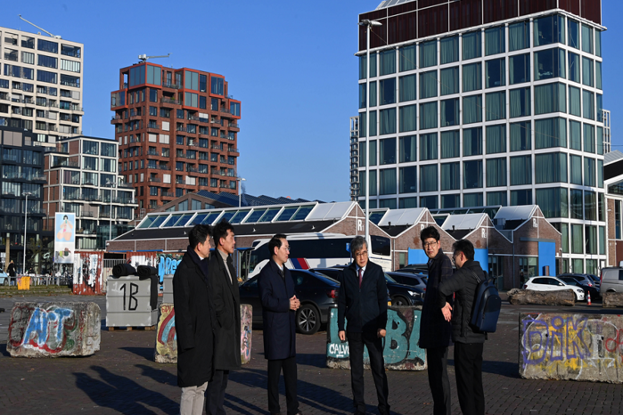 | ▲유정복 인천시장이 지난 19일 네덜란드 항만 재생 지역을 둘러보고 있다.(사진=인천시 제공) |