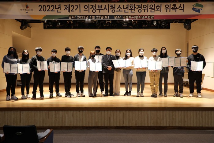 이번 위촉식에는 조경서 수련관장 외 청소년수련관 관계자들을 비롯한 청소년환경위원회 위원으로 선발된 15명의 청소년이 참여했으며 위촉장 수여와 수련관장과의 대화 등 2022 환경활동 및 의정부시 환경에 대해 의견을 나누는 시간을 가졌다.