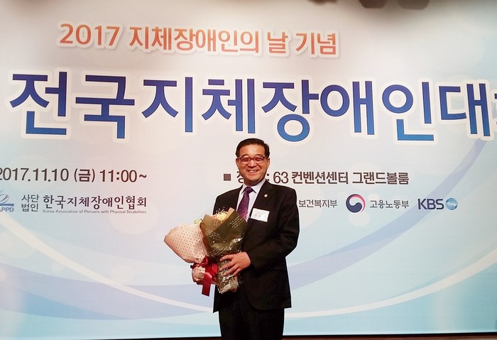 대전중구의회 문제광 의원은 사단법인 한국지체장애인협회 주관으로 63컨벤션센터(서울 여의도동 63빌딩 내)에서 개최된 제17회 전국지체장애인대회에서 '상곡 인권상 우수상'을 받았다고 12일 밝혔다.