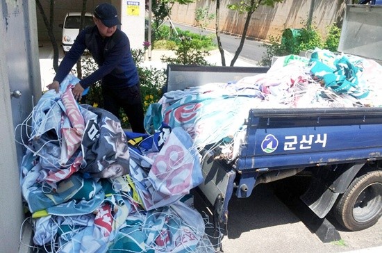 21일 군산시에 따르면 시는 불법 벽보, 현수막, 전단, 명함형 전단을 효율적으로 수거하기 위해 5000만원의 예산으로 불법광고물 수거보상제를 5월부터 실시하고 있다.