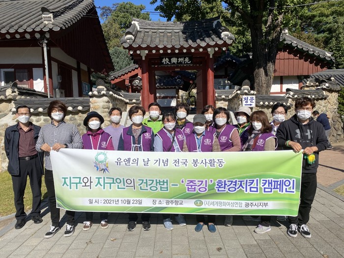 세계평화여성연합 광주광역시 지부는 지난 23일 광주향교에서 광주시 회장을 비롯해서 대략 20여명의 회원들이 함께 쓰레기 줍기와 풀뽑기 봉사활동을 진행했다고 25일 밝혔다.