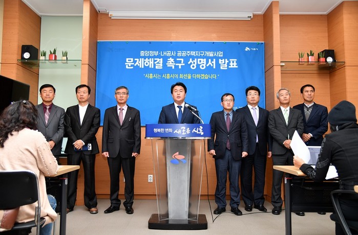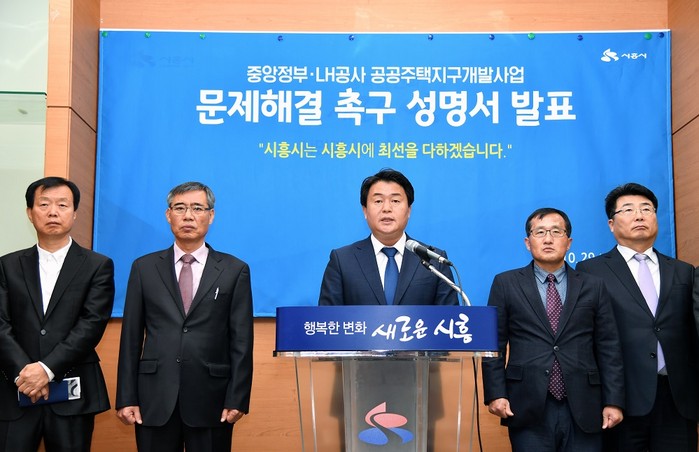 | ▲ 중앙정부 및 LH공사 공공주택지구 개발사업 문제 해결 촉구 성명(사진=시흥시청 제공) |