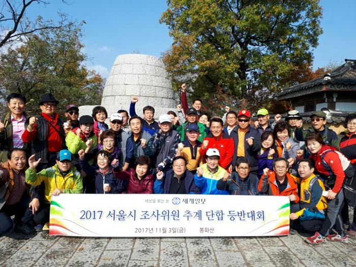 [세계로컬신문 황학수 조사위원] 세계일보 조사위원 서울시상임위(회장 황학수)가 지난 3일 서울 중랑구 소재 봉화산에서 '2017 서울시 조사위원 추계 단합 등반대회'를 개최하고 사진촬영을 하고 있다.