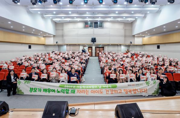 이어 ▲1부 기념식에서는 아동학대 예방 유공자 표창, 후원물품 기탁식, 기념사, 오산시청 어린이집 아동 퍼포먼스, ‘아동학대 NO, 긍정양육 YES’를 외치는 단체 기념촬영이 진행됐다. ▲2부 특별강연에서는 리플러스 인간연구소 박재연 소장이 ‘부모를 위한 건강한 대화법’을 주제로 특강을 펼쳐 큰 호응을 얻었다.