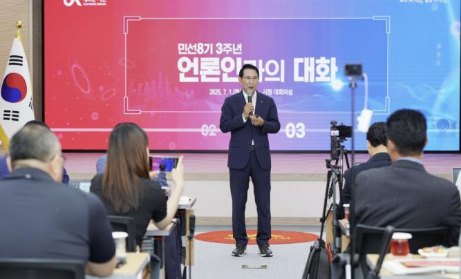 이 시장은 7월 1일 시청 대회의실에서 ‘언론인과 대화’를 열고, 지난 3년간 주요 성과와 앞으로의 시정 추진 방향을 5대 시정 목표를 중점으로 설명했다.