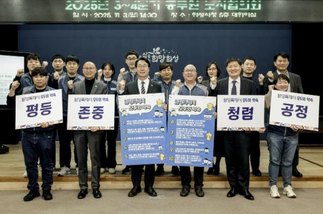 또한, ‘화성특례시 모두의 약속’ 퍼포먼스를 통해 청렴과 공정, 평등의 가치를 함께 되새기며 건강한 조직문화 정착을 위한 노사 간 의지를 다졌다.