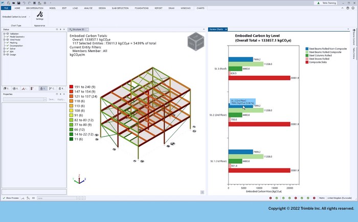 트림블의 지속 가능한 워크플로우를 향한 노력을 바탕으로, 테클라 스트럭처스와 스트럭처럴 디자이너는 내재탄소 계산기(Embodied Carbon Calculator)를 통해 설계 및 디테일링 프로세스에 동적 내재탄소 계산 기능을 제공한다.