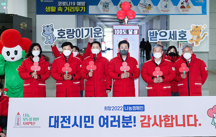 [세계로컬타임즈 민순혜 기자] 3일 오전 대전시청 1층에서 지난해 12월 1일부터 올해 1월 31일까지 총 62일간 진행된 희망2022 나눔 캠페인 폐막식 행사가 열렸다.