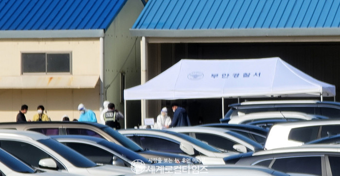 | ▲지난 17일 부안경찰서 주차장에서 코로나19 전수 검사가 실시되고 있다. |