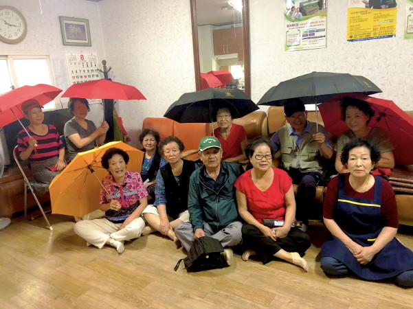 어르신들은 "평소에 양산을 잘 사용하지 않는데 실제로 써보니 햇빛이 차단돼 확실히 덜 더운거 같다"며 "양산이 부채보다 낫다"고 말했다.